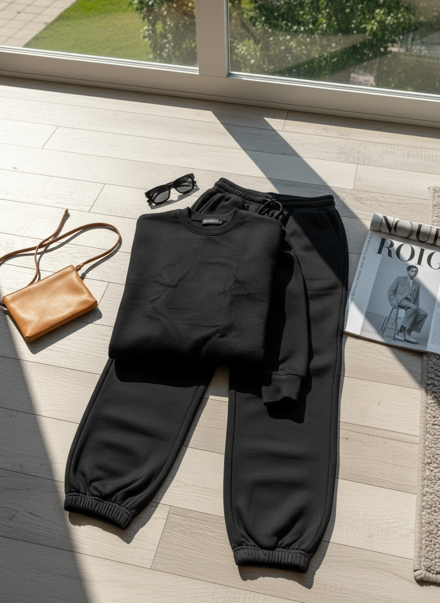 The hoodie features a structured yet relaxed silhouette with a smooth, plush interior, while the matching joggers are tailored with a clean taper, elastic waistband, and ribbed cuffs for a polished finish. Designed for those who appreciate minimalist aesthetics, premium quality, and timeless design, this set transitions seamlessly from relaxed indoor wear to elevated streetwear.